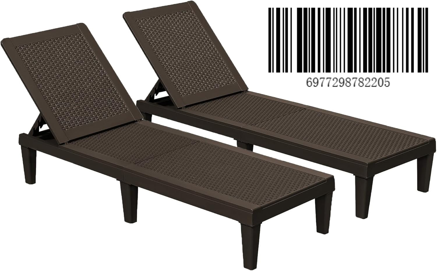 Devoko Outdoor Chaise Lounge Chair Set of 2 for Outside Pool Patio, Adjustable Waterproof Easy Assembly Chaise Lounge Outdoor (Deep Brown, Set of 2)