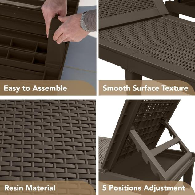 Five-Position Adjustable: The backrest of chaise lounge outdoor can be adjusted to five different positions, allowing you to find your desired comfortable angle or even lie flat according to your needs.