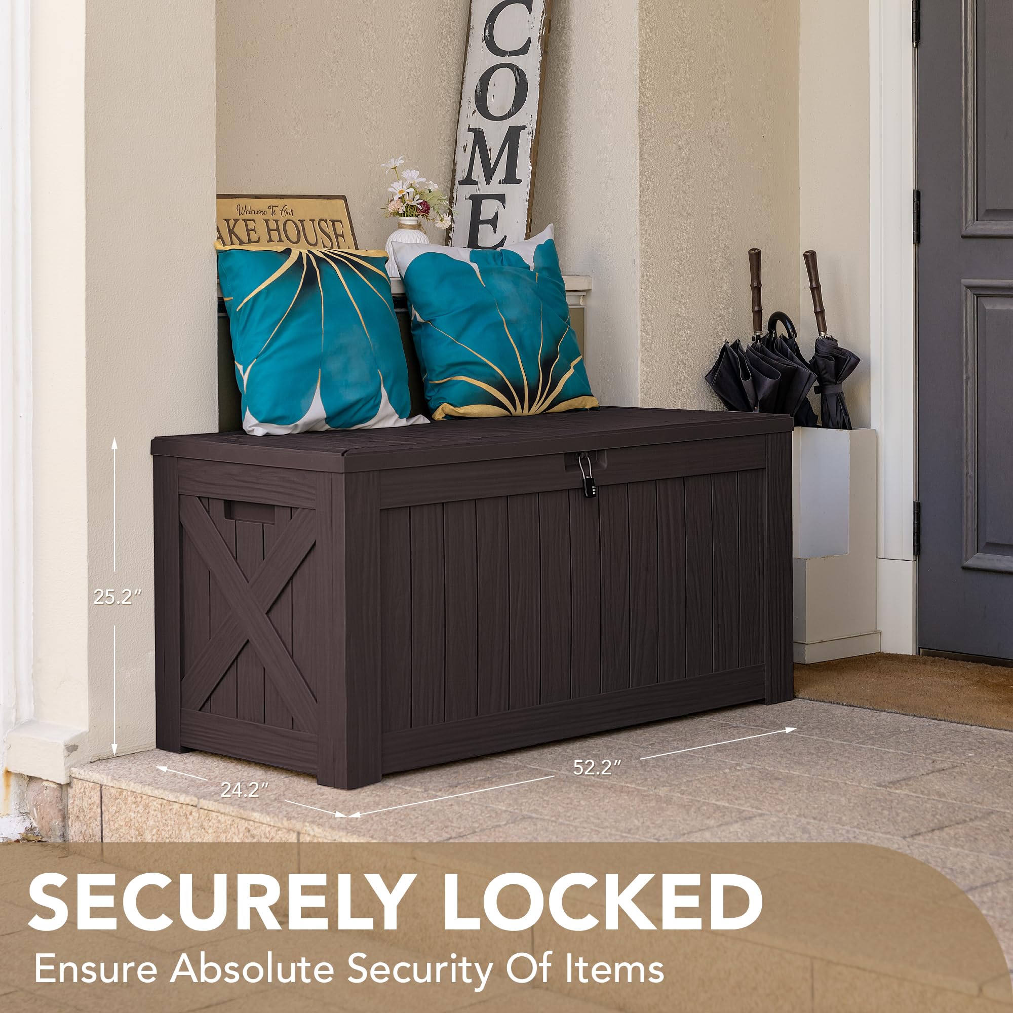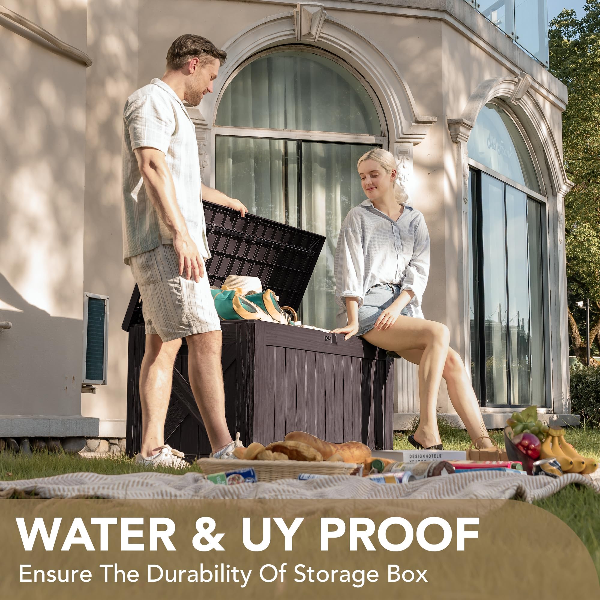 Devoko 120 Gallon Deck Box Resin Outdoor Storage Box Waterproof for Patio, Large Outdoor Storage Bench Lockable for Outside (Deep Brown)